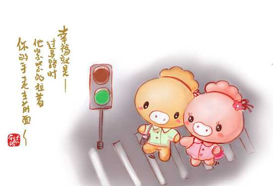 5、幸福就是——过马路时,他紧紧的拉着你的手,走在前面…