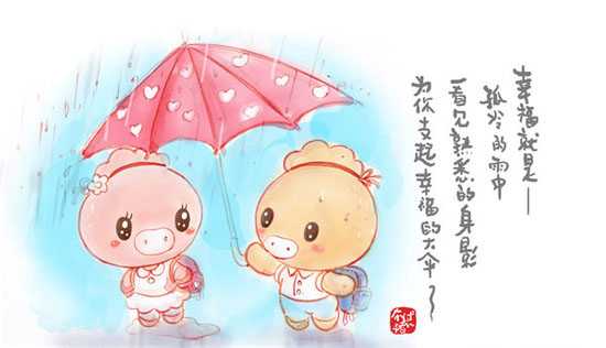 8、幸福就是——孤冷的雨中,看见熟悉的身影,为你支起一把幸福的大伞…